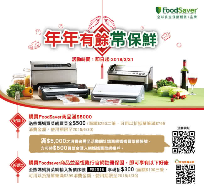 Foodsaver可延長食物保存,就算購買家庭號大包裝,也不用 再擔心過期吃不完造成浪費。在美國,Foodsaver為每個家庭 年省至少US$2,700元食物開銷。
